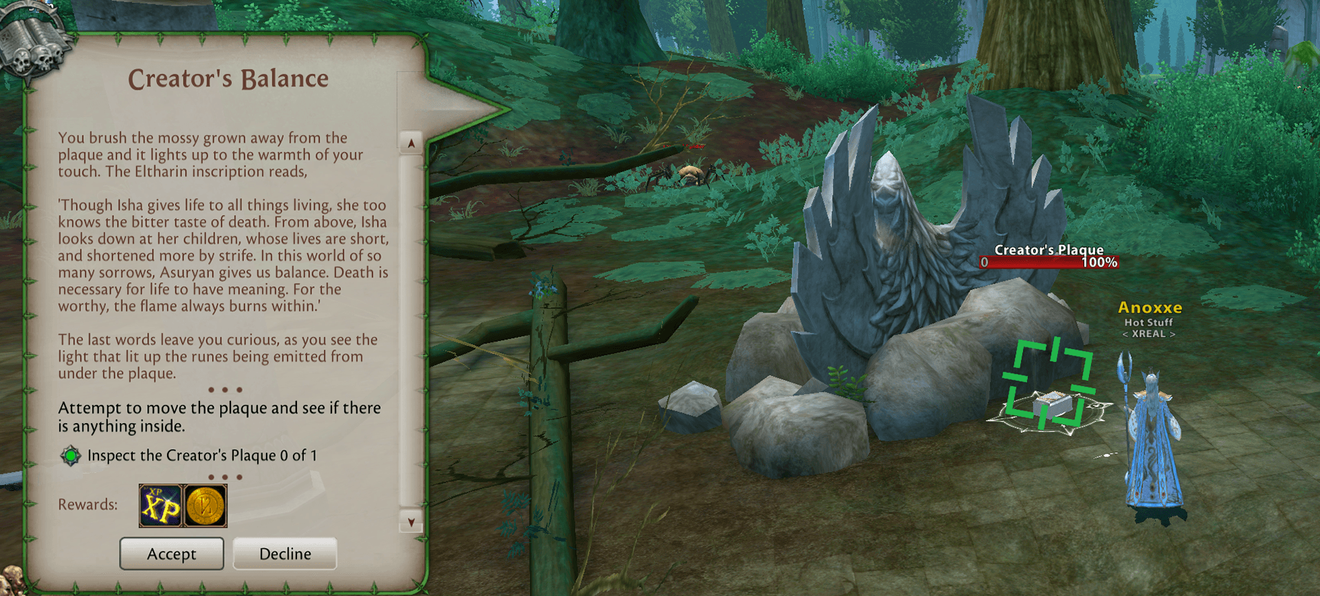 Fly to Avelorn and run directly East to the ruins, you will see a broken statue of a griffin, run to the other side and click the box to get the quest. Wait a few seconds and click it again.